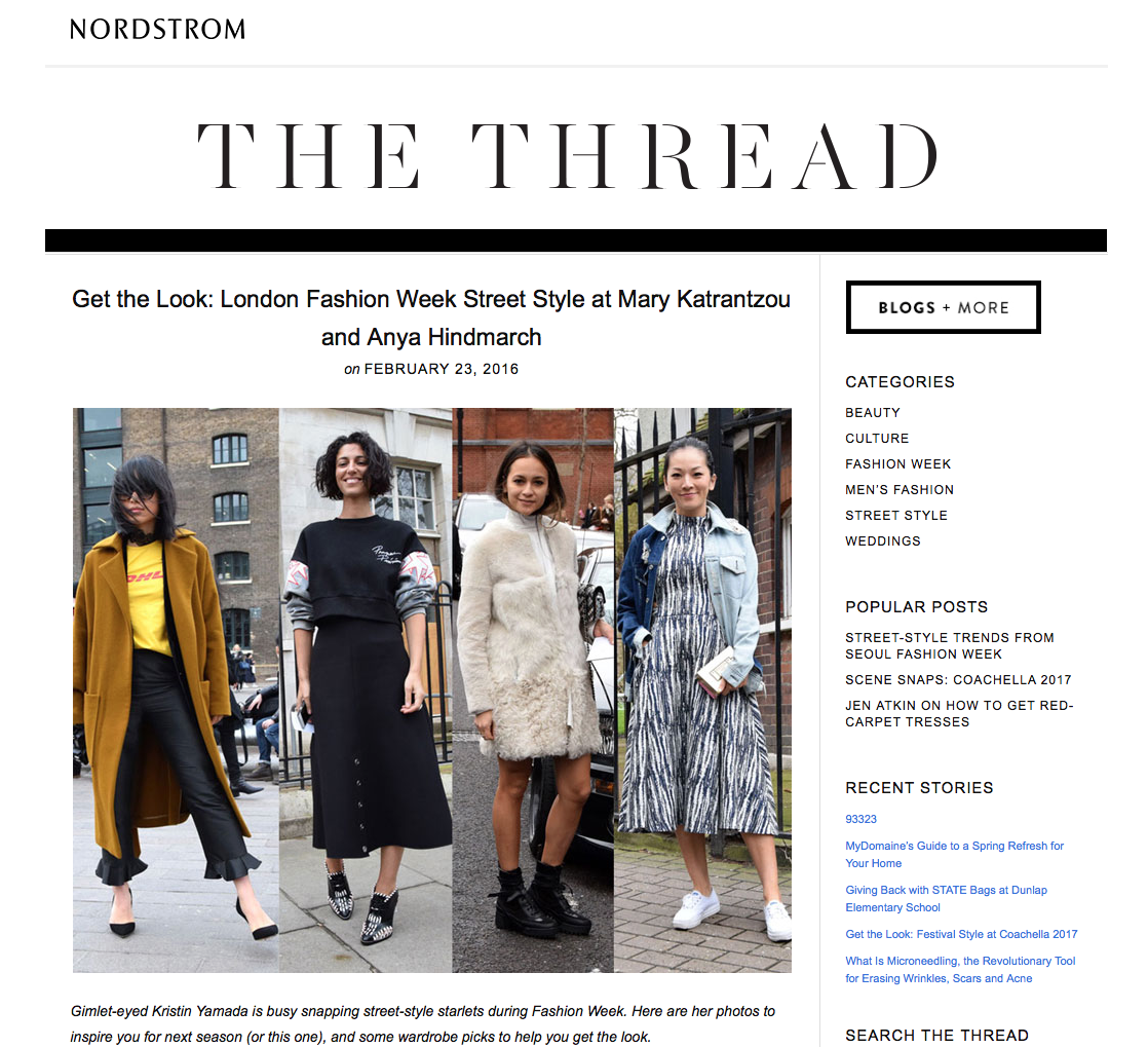 Selecting, editing, transcribing, coding & composing images & HTML for shoppable street style blog posts for Nordstrom's "The Thread".