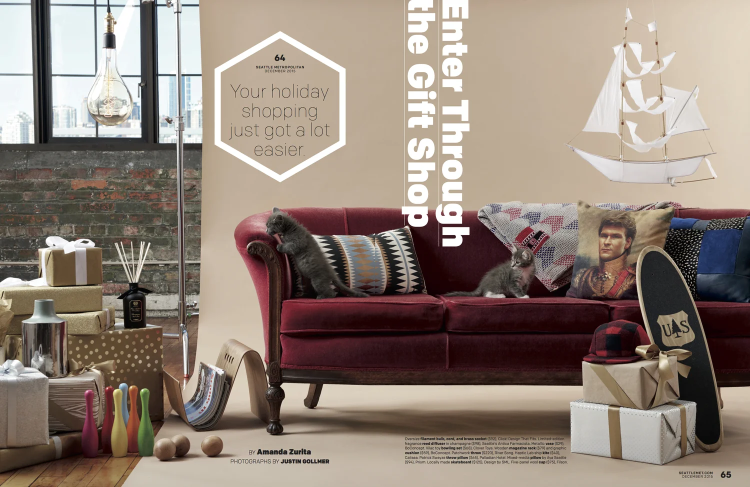 Assistant stylist, Holiday Gift Guide 2015 feature for Seattle Met, December 2015 | Photography by Justin Gollmer