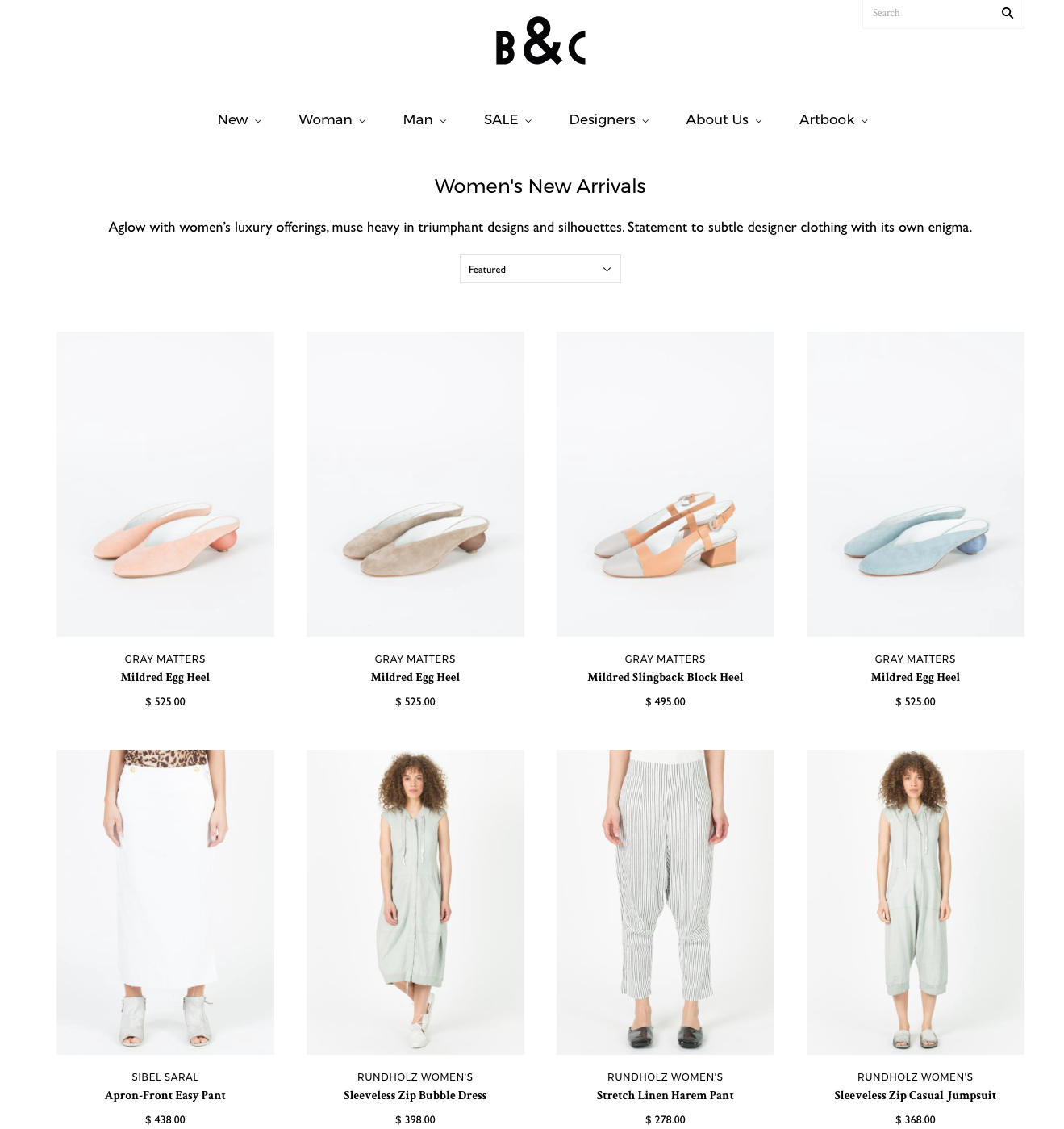 Visual merchandising for SS '17 Women's New Arrivals for Baby & Company's online store.