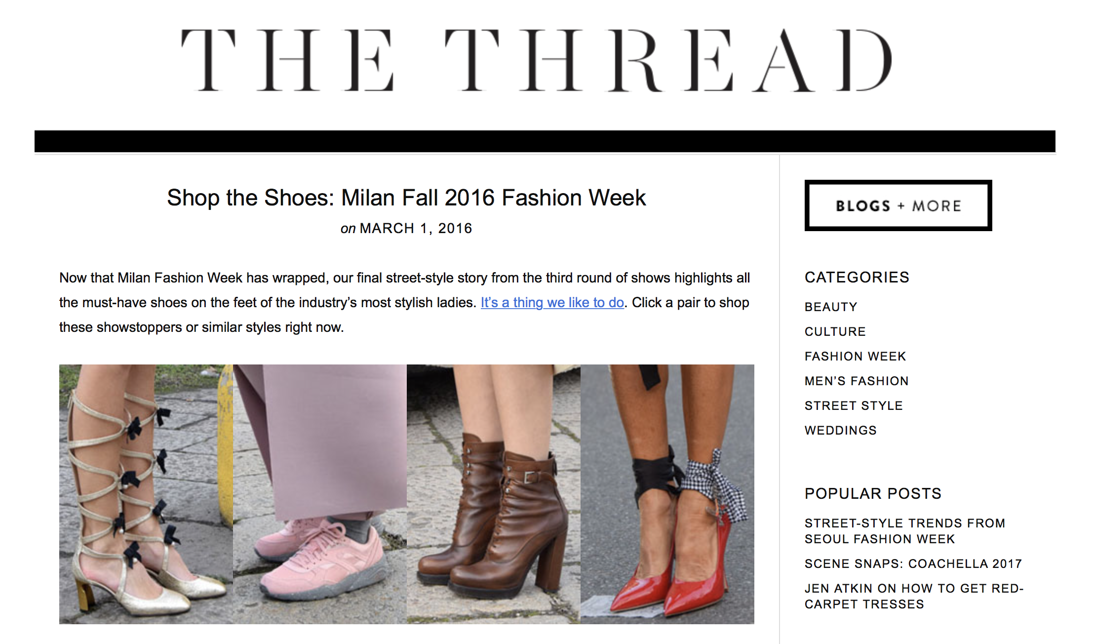 Selecting, editing, coding & composing images & HTML for shoppable street style blog posts for Nordstrom's "The Thread".