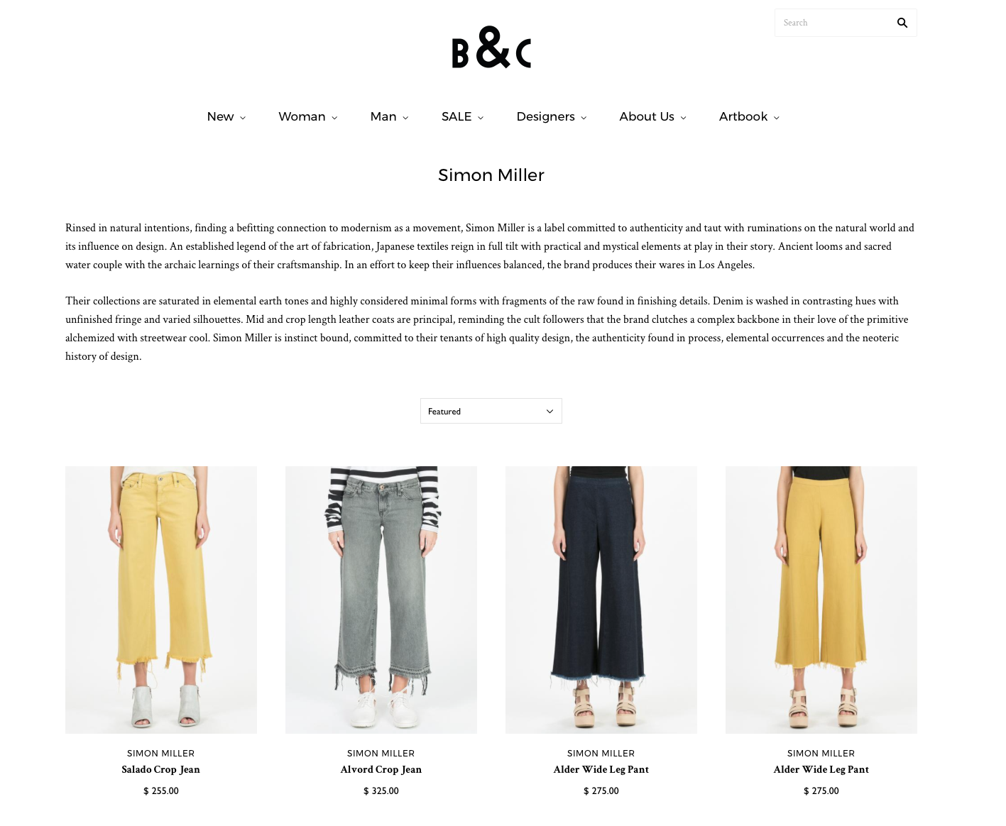 Visual merchandising for the Simon Miller SS '17 collection page for Baby & Company's online store.